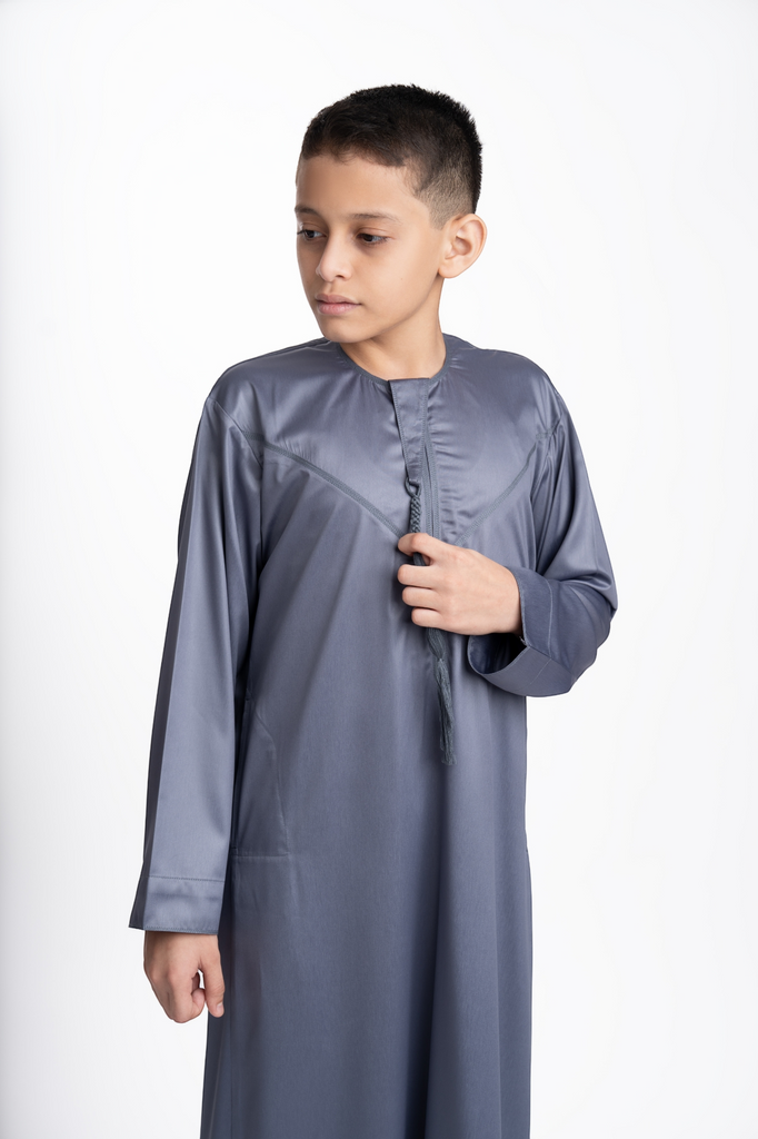 A simple butelegant thobe which is a staple of any child’s wardrobe, a must-have for any occasion.