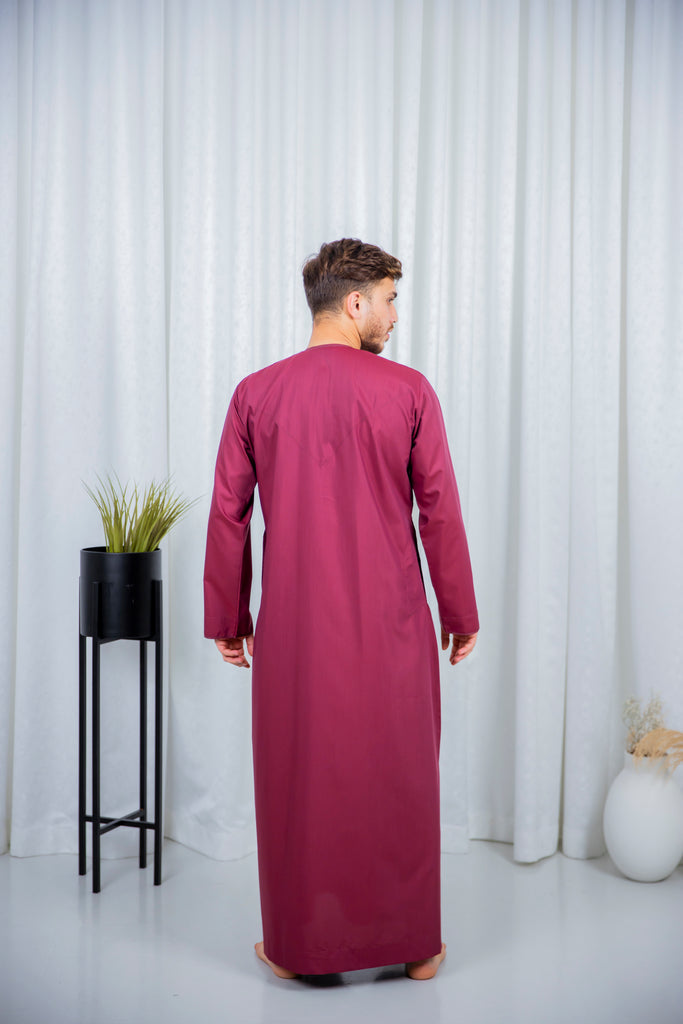 Discover the timeless luxury of Hub Alhaya’s Simple Maroon Emirati Jubba. Crafted with exclusive limited numbers, this stylish jubba's soft touch fabric is carefully adorned with an Emirati design and removable tassle for authenticity. Seize this exclusive opportunity as once sold, it won’t be available anymore! Embrace the elegance of Hub Alhaya’s Simple Maroon Emirati Jubba!