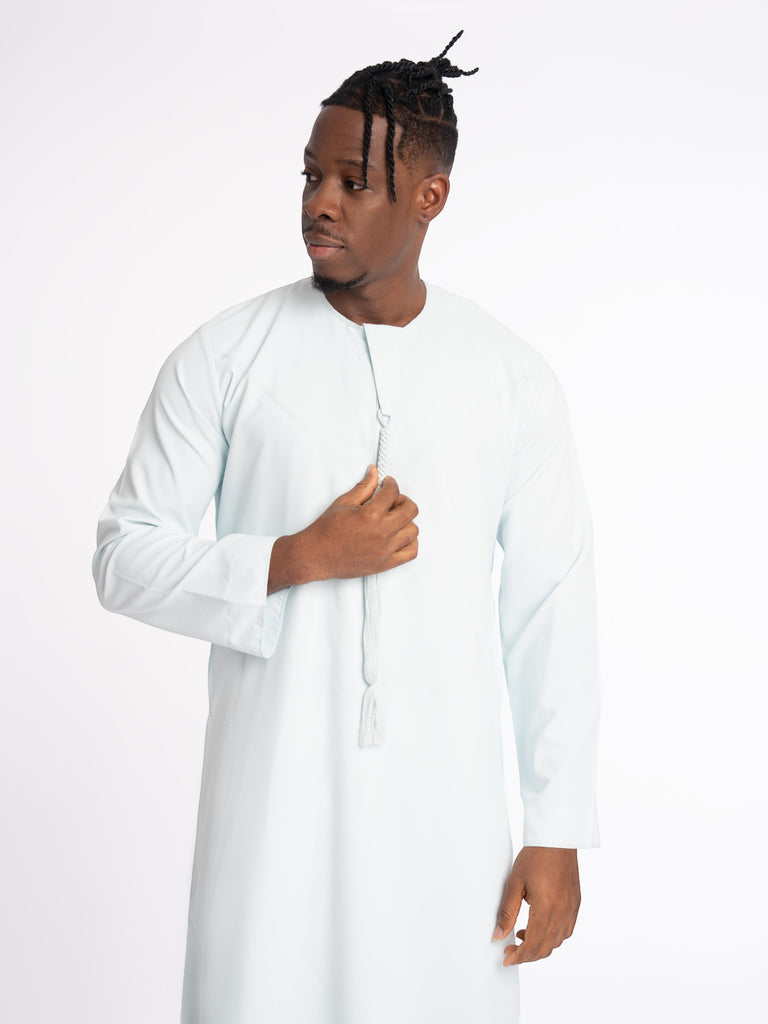 Transform your wardrobe with our Basic Glacier Green Emirati Jubba. Designed for Ramadhan 2025, this stylish piece is part of our Hub Alhaya Basics collection. Made with a unique matte fabric blend, it features a removable tassel choose from our 10 new colours. Upgrade your style with our RM25 range or explore the full collection now!