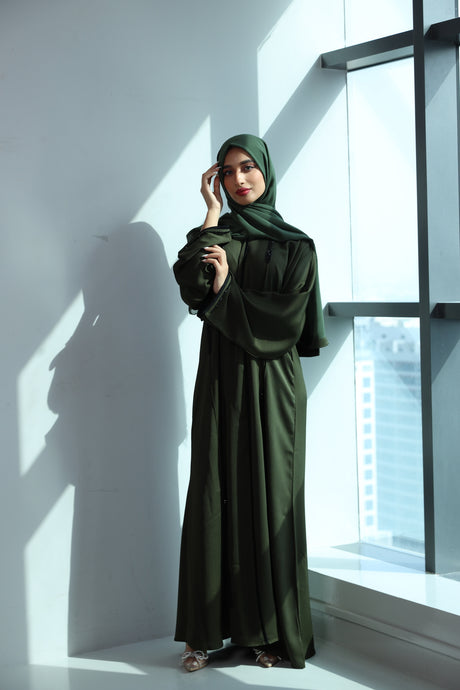 Our Khaki Closed Abaya stylishly highlights classic abaya designs with stunningly sophisticated embellishments while ensuring day-long wearability and comfort. The hand-stitched details and slim plaited rope tassel belt add a special touch to every look, making this abaya an elegant year-round favorite that can be worn for both everyday occasions and show-stopping night events. An included matching color hijab adds the perfect finishing touch.