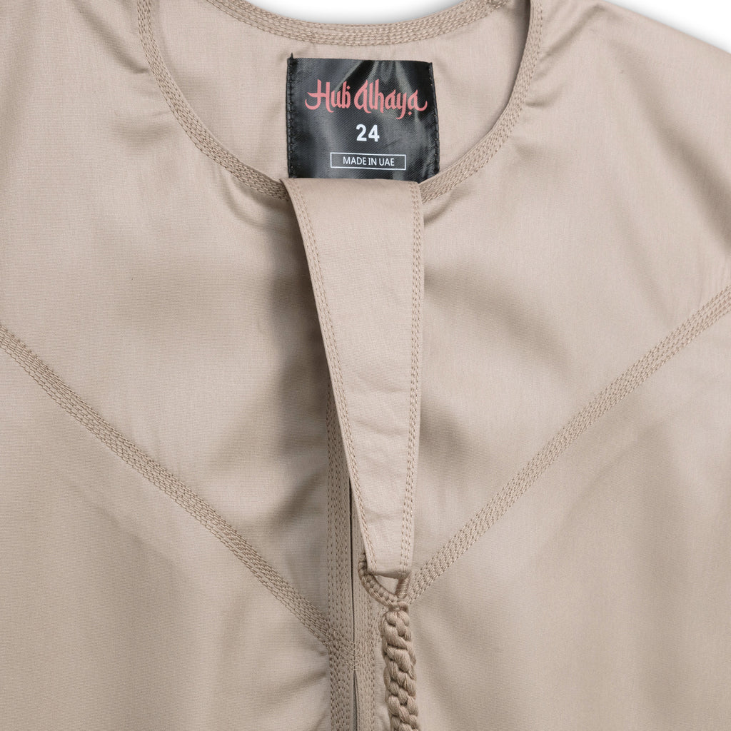 High quality baby romper thobes for babies, with sizes starting from newborn. Handmade like our whole collection the quality of each piece is guaranteed. Traditional emirati embroidery and the long tarboosh (tassle) which is removable.