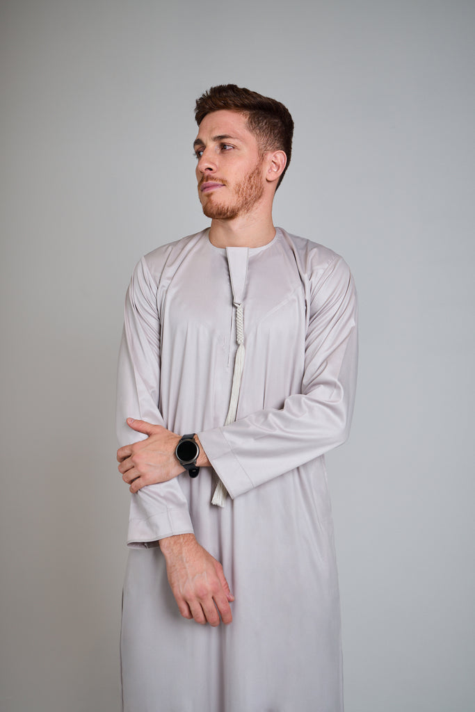 A simple but elegant thobe which is a staple of any mans wardrobe, a must have for any occasion.