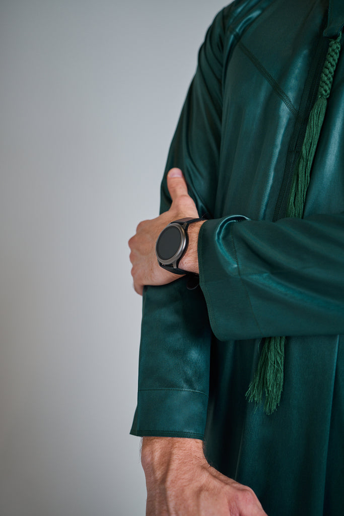 A simple but elegant thobe which is a staple of any man’s wardrobe, a must-have for any occasion.