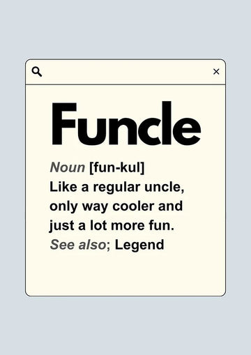 Celebrate your 'funcle' with a grin-inducing card that shows just how fun and fantastic your uncle truly is! This A5 card, made from premium heavyweight card sourced from sustainable materials, comes complete with a fitting envelope. Designed and produced in Great Britain, add a personalised message for a heartfelt way to share laughter, smiles and love.